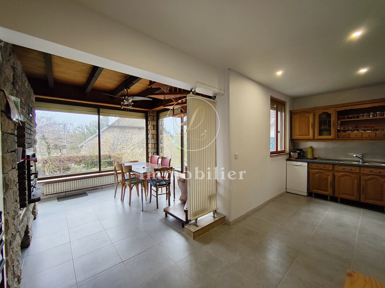 L'agence L. IMMOBILIER vous propose en exclusivité cette agréable maison de 111,67m² habitables répartis sur deux niveaux. Ce bien situé à L'AIGLE bénéficie d'un environnement calme et reposant à seumement 2 min du centre de Baume-les-Dames. Ce bien se compose au rez-de-chaussée d'une véranda très lumineuse permettant l'accès à la cuisine, d'une belle pièce de vie, d'une salle d'eau et d'un WC; puis à l'étage se présentent deux belles chambres, une spacieuse salle de bains avec WC, une grande pièce mansardée pouvant servir de salle de jeux pour enfants ou stockage, ainsi qu'une mezzanine pur coin lecture, salle de détente ou simplement une troisième chambre. Deux garages, une buanderie et une cave complètent ce bien, mais également un appenti, un extérieur agréable et un terrain d'aisance sur l'arrière de la maison.
