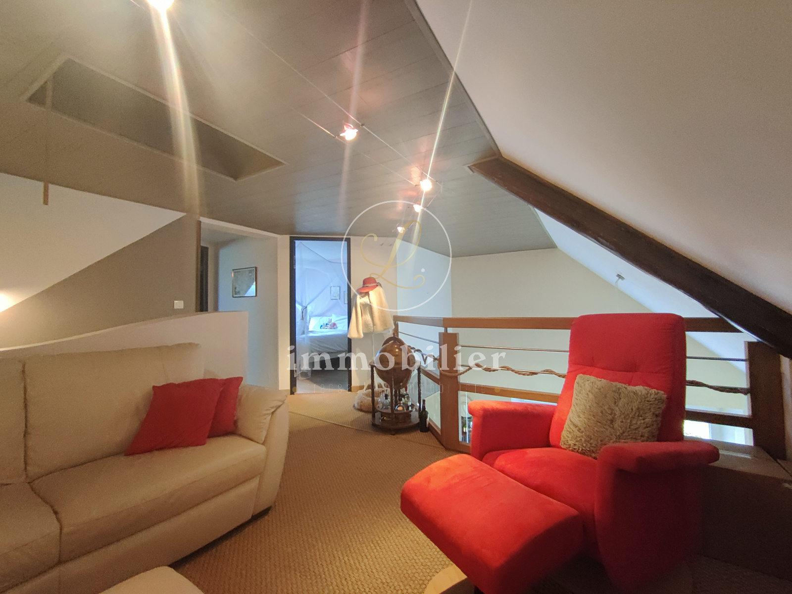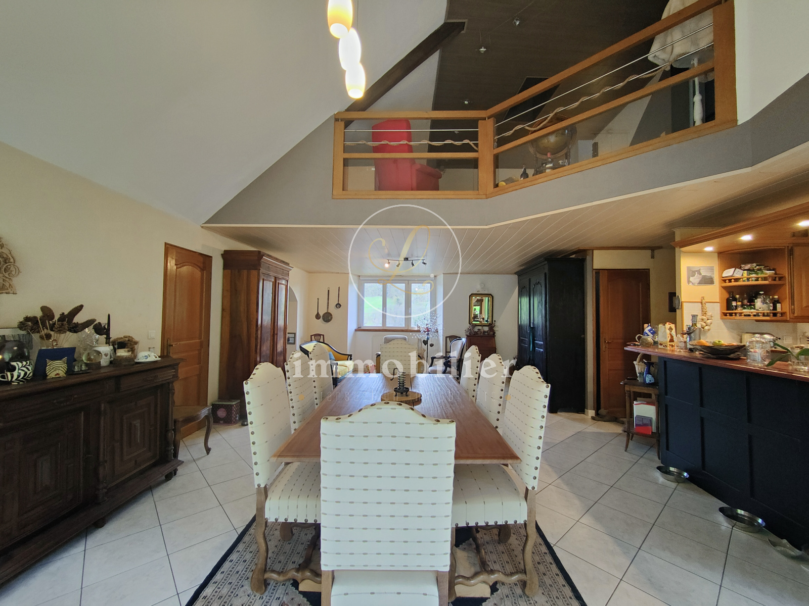 Ce bien comprend au RDC une entrée, une très belle pièce de vie lumineuse et traversante avec hauteur sous plafond, une cuisine aménagée et équipée ouverte, un espace bureau, une salle de bains (douche et baignoire), une chambre et un WC; au niveau inférieur deux chambres cosy et au 1er étage une jolie mezzanine, deux chambres ainsi qu'un WC séparé.