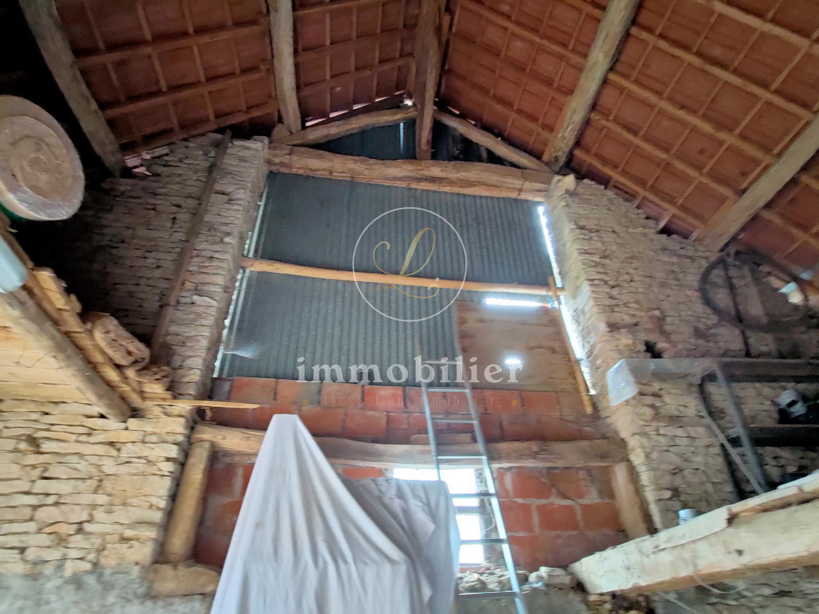 Comptant actuellement 37,51m² (53m² environ au sol) sur deux niveaux, elle comprend au RDC une entrée sur cuisine, un salon/salle à manger ainsi qu'une salle d'eau avec WC; l'étage propose deux chambres. Le gros potentiel se trouve dans la partie grange attenante où il est possible d'agrandir la surface habitable de 70m² environ sur deux niveaux. Un garage, une cave ainsi qu'une terrasse complètent ce bien.